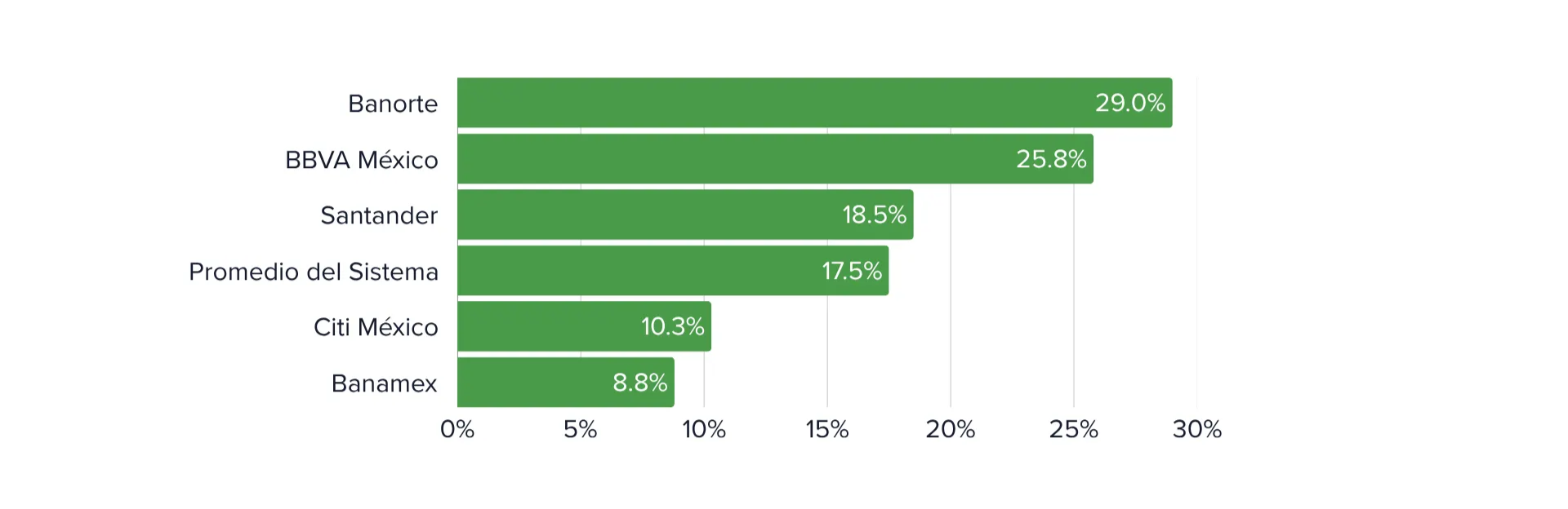 La separación dejó a Banamex como el cuarto banco en depósitos (8.7%) pero séptimo en créditos (6.2%), con cartera reducida 35% tras ceder activos corporativos a Citi. Su composición actual es predominantemente minorista: tarjetas de crédito, préstamos personales e hipotecas representan 70% de la cartera.