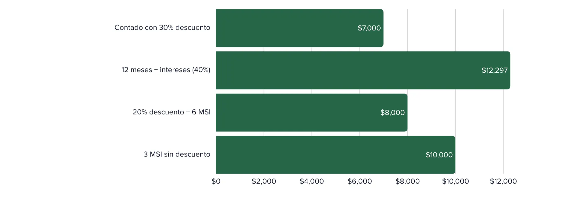 Contado con 30% descuento: pagas $7,000 (ahorro de $3,000)