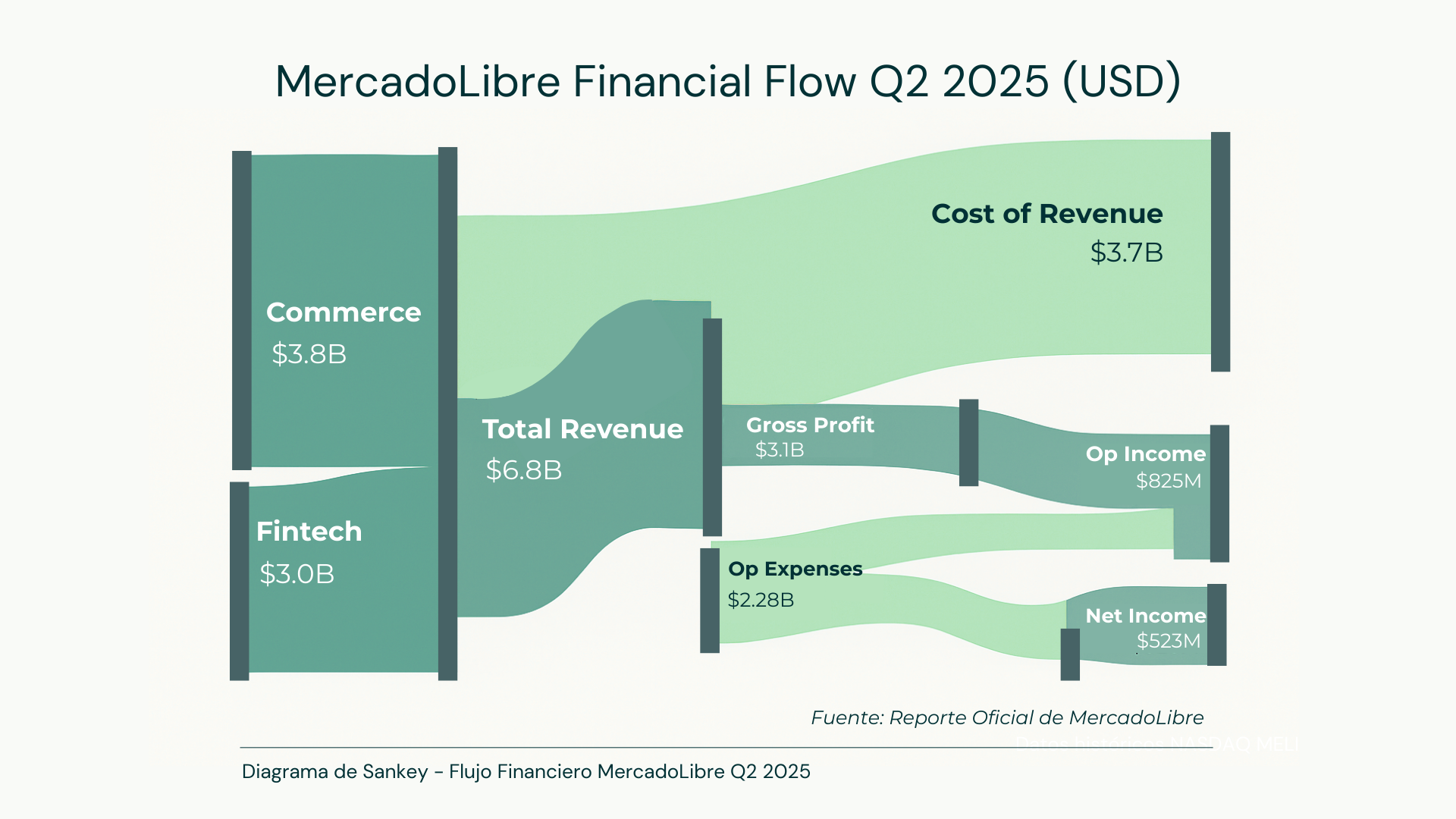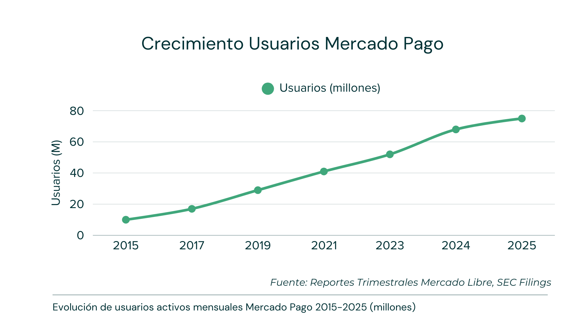 La transformación más espectacular comenzó cuando Mercado Libre comprendió que los datos de comportamiento comercial valían más que el oro. Mientras bancos tradicionales rechazaban emprendedores sin historial crediticio, desarrollaron algoritmos que evaluaban patrones de venta en la plataforma. El resultado: $9.3 mil millones en cartera de crédito (+91% interanual) y $4 mil millones en tarjetas de crédito (+118% interanual) para Q2 2025. Con 68 millones de usuarios activos mensuales en Mercado Pago (+30% interanual), no solo compiten con bancos tradicionales: los están demoliendo.
